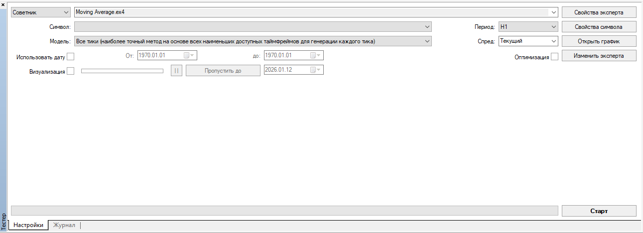 Рис.1 Интерфейс тестера стратегий в MetaTrader