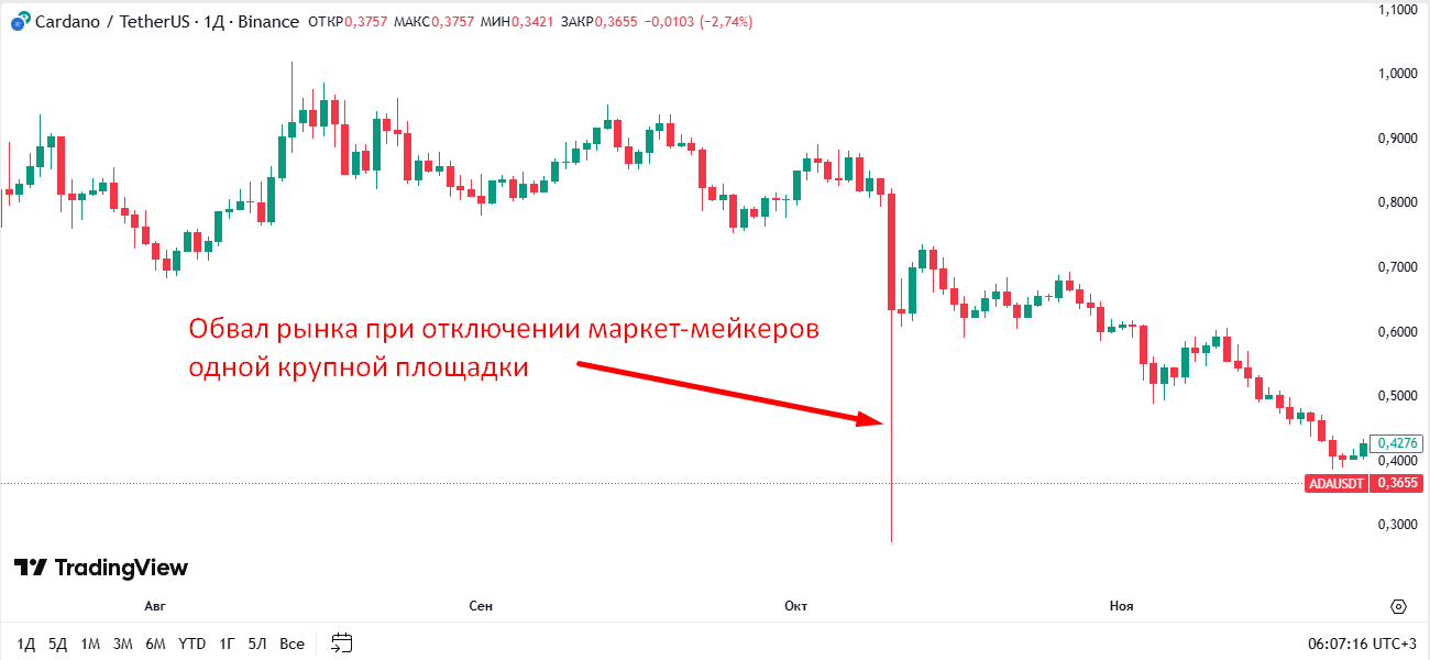 Однако крипторынок остается более хаотичным и подверженным спекуляциям по сравнению с другими рынками. Недостаток ликвидности в отдельных токенах позволяет крупным игрокам легко манипулировать ценой, а технические ограничения DEX-сетей приводят к задержкам исполнения и проскальзыванию.