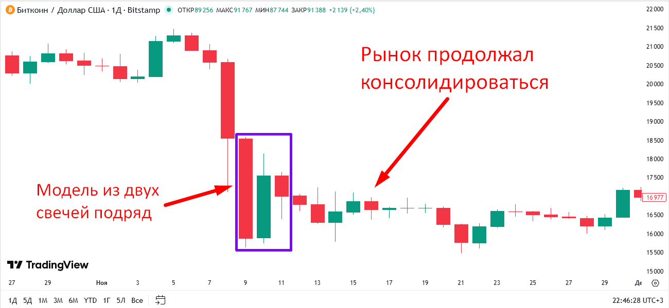 - Гибкость применения. Паттерн хорошо работает на разных инструментах – от валютных пар и индексов до золота и криптовалют.