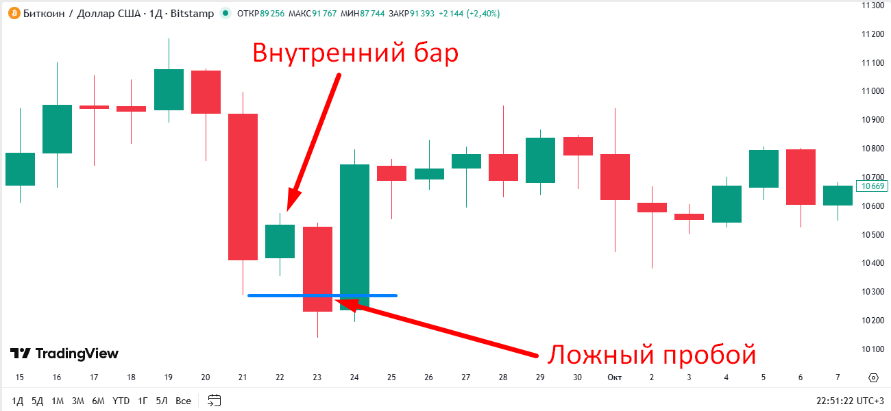 - Зависимость от контекста. Inside Bar не имеет смысла вне общей картины рынка. Без анализа уровней, фаз тренда и ликвидности его сигналы становятся случайными.