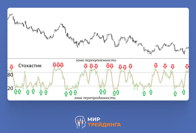 Когда линии %K и %D пересекаются, возникают торговые сигналы