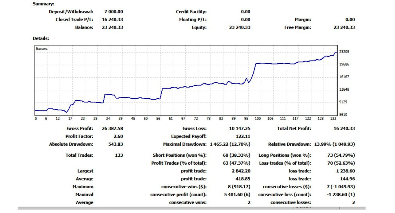 - Статистически подтвержденная вероятность успешных сделок.