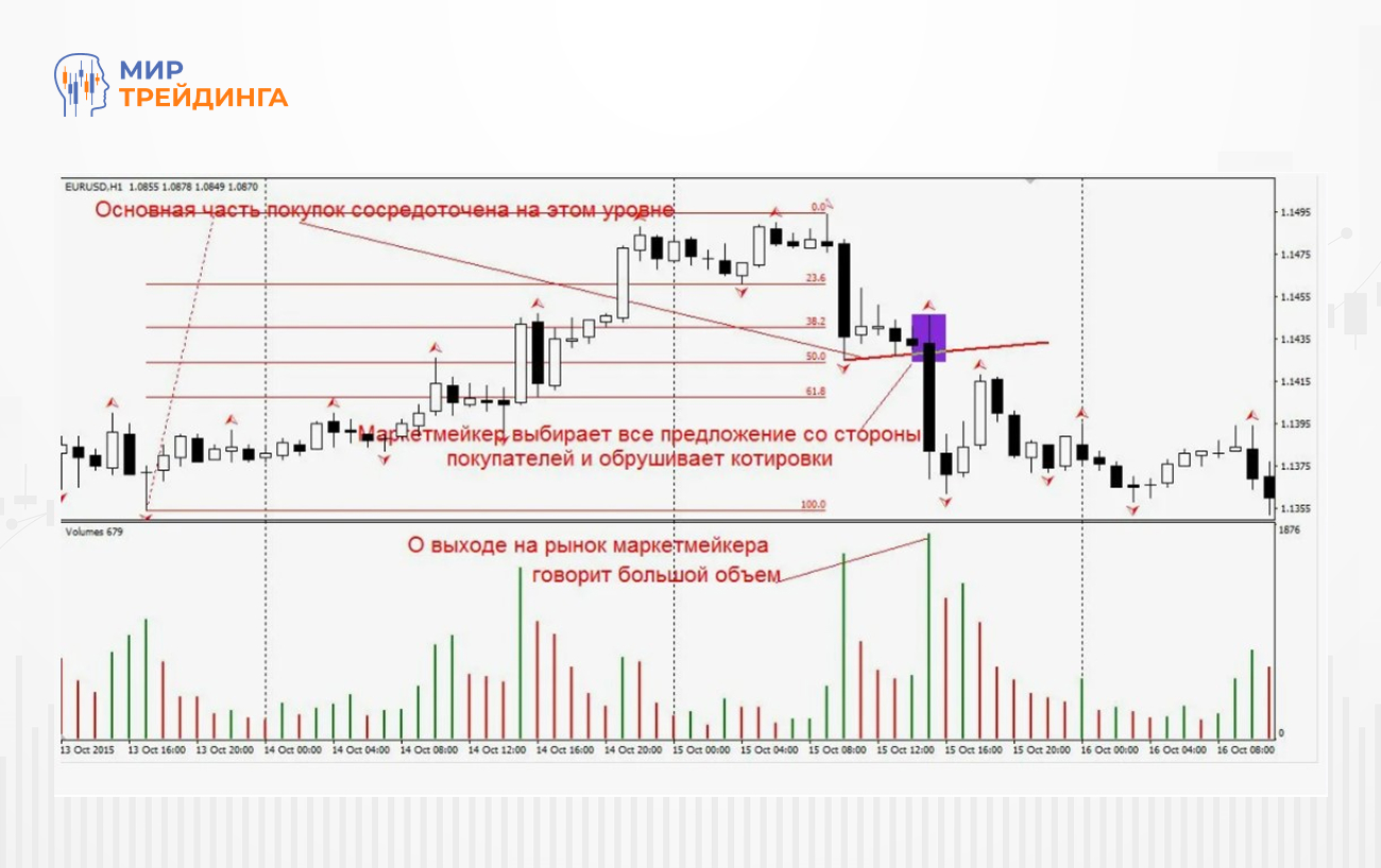 Однако для розничного трейдера наибольший интерес представляет не этот базовый принцип, а действия крупных участников — маркет-мейкеров, институциональных фондов и других “китов”.