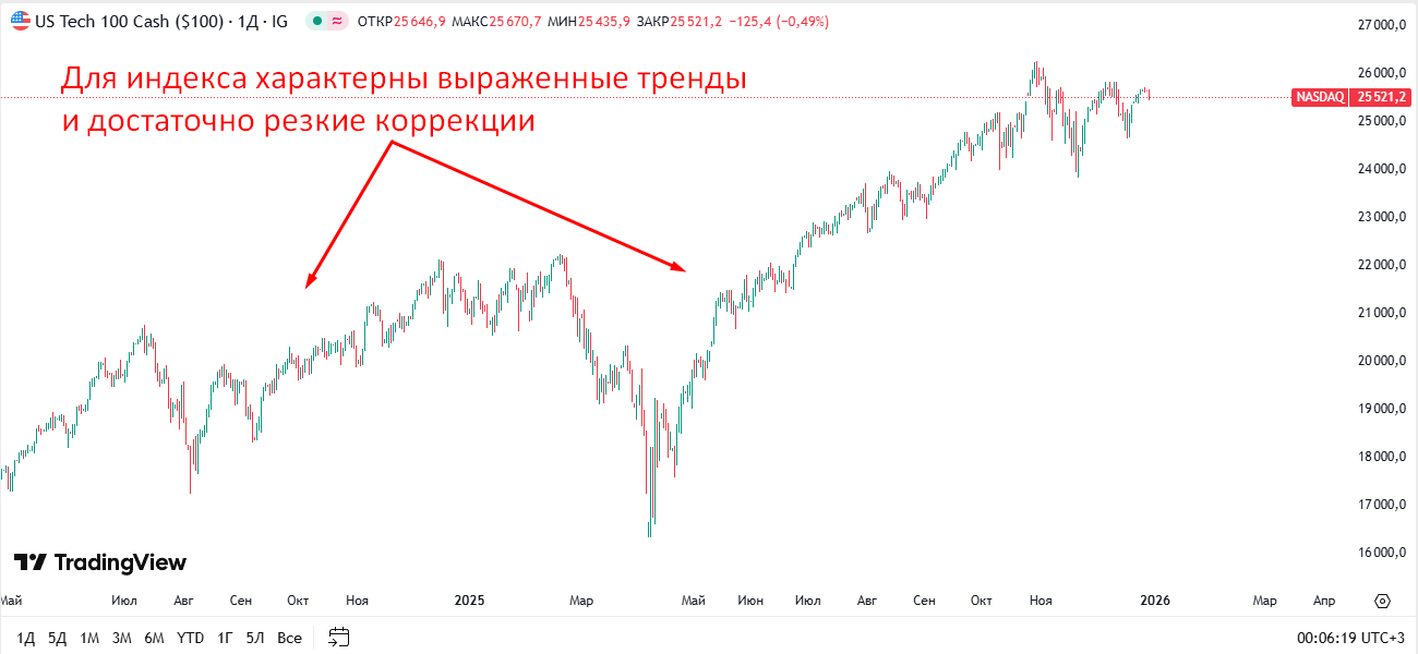 NASDAQ часто реагирует на изменения рыночных ожиданий быстрее других индексов, что делает его чувствительным, но в то же время информативным индикатором настроений инвесторов. Этот индекс реагирует на любые события острее по сравнению с индексами более широкого рынка.
