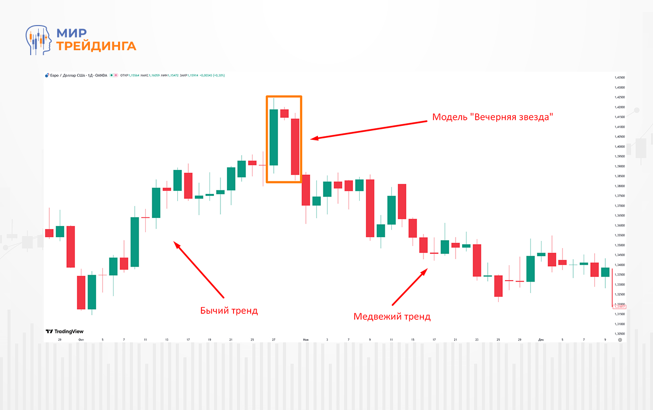 Утренняя звезда формируется после снижения и указывает на переход к росту. Вечерняя звезда наоборот, сигнализирует о завершении восходящего тренда. Эти модели особенно ценны, когда сопровождаются ростом объемов и подтверждением с помощью уровня поддержки или сопротивления.