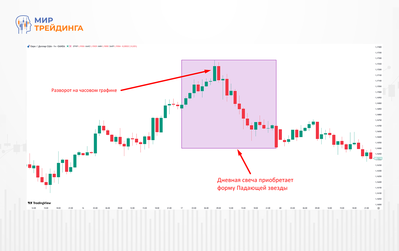 Рис.7 Модель Падающая звезда в конце бычьего тренда